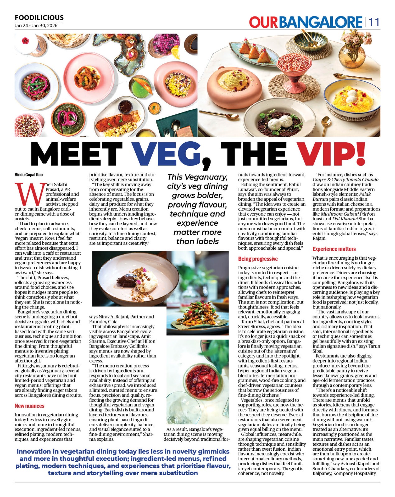 For a long time, Bangalore’s vegetarian dining landscape was fairly limited, either rooted firmly in regional cuisine, or accessible only through luxury or premium fine dining spaces where global vegetarian food existed as a niche offering. That is now changing. The industry has begun to recognise vegetarian and vegan food as a serious, growing market with depth and opportunity. What we’re seeing today isn’t innovation for novelty’s sake, but a more mature understanding of vegetarian food as a cuisine in its own right. There’s deeper thinking around ingredients, provenance, and technique.