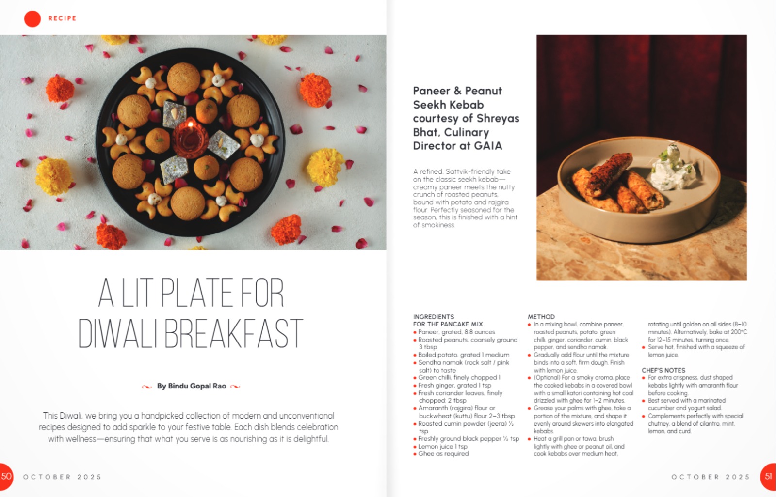 • Paneer & Peanut Seekh Kebab courtesy of Shreyas Bhat, Culinary Director at GAIA.