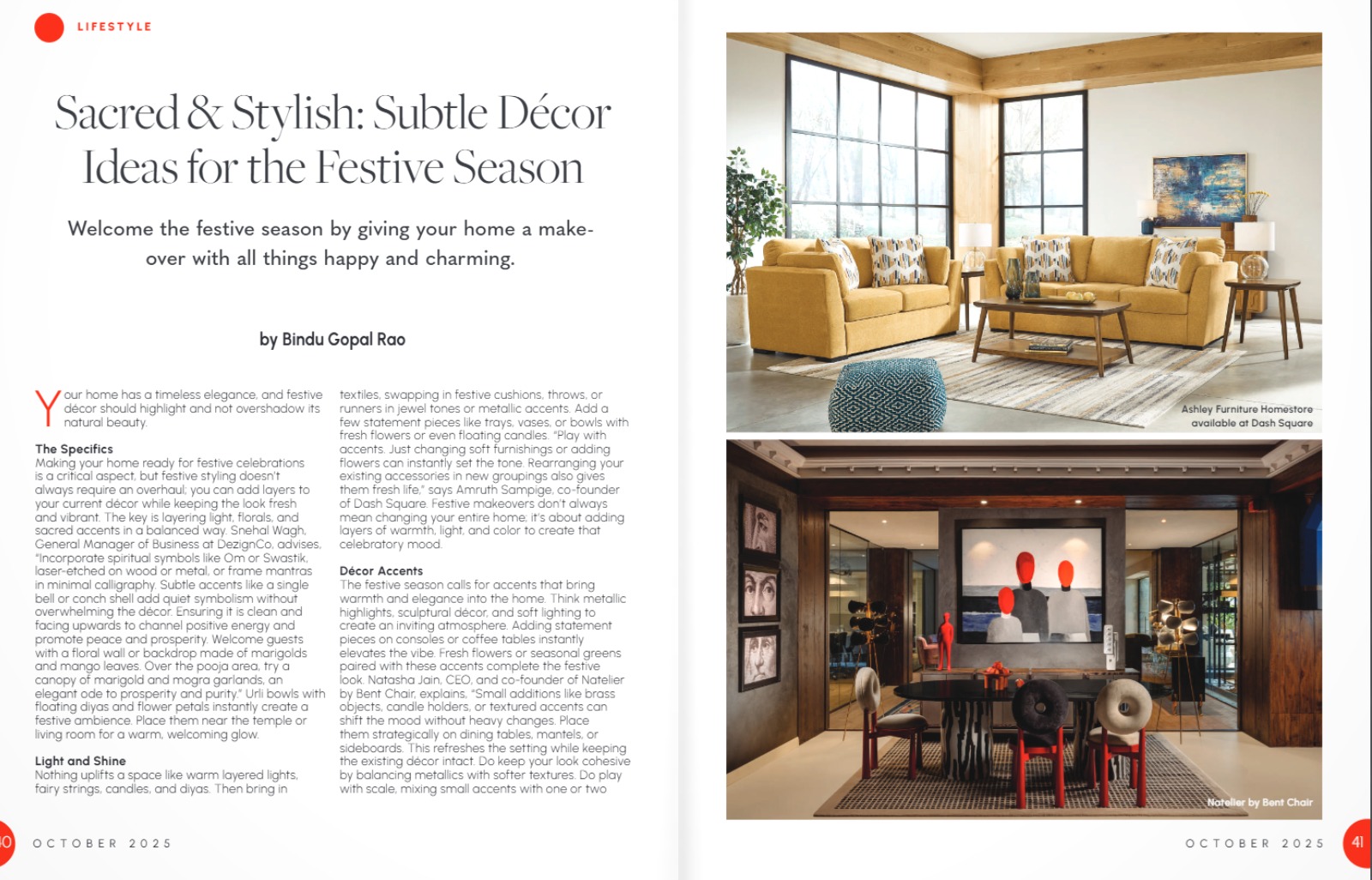 This festive season, elevate your home beyond interiors and décor by embracing thoughtful elegance, balance, and richness—steering clear of cluttered or asymmetrical arrangements. Let your festive styling mirror your personality and innate sense of refinement. After all, a well-designed festive home doesn’t need to be loud; it should radiate warmth and feel like a sacred celebration of love, prosperity, and happiness. The festive season is about creating a mood, not just decorating. Think of your home as a canvas and add elements that spark joy and conversation.