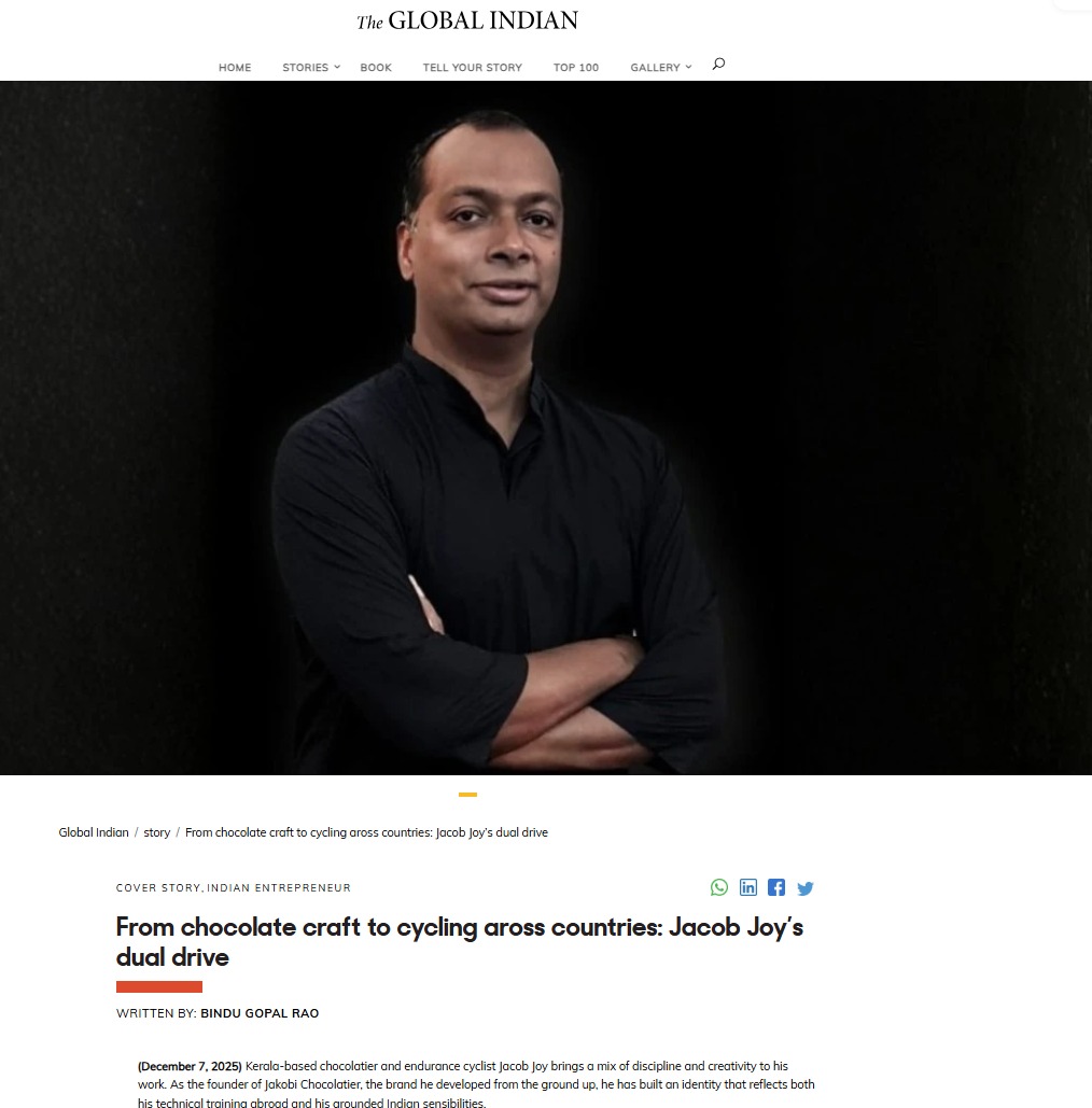 Jacob Joy stands at the intersection of craftsmanship, endurance, and modern Indian entrepreneurship. As a trained chocolatier with formal expertise from ZDS, Germany, and a seasoned ultra-endurance cyclist who has completed the NorthCape 4000 (4,176 km), Jacob brings together two worlds that demand discipline, precision, creativity, and resilience.