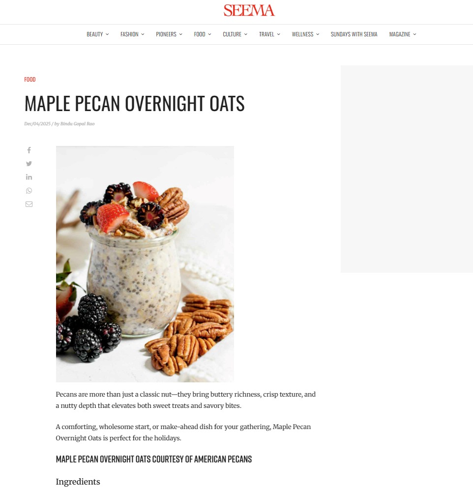 American Pecans shares this holiday recipe for Maple Pecan Overnight Oats that is sure to add a nice healthy touch to your December.