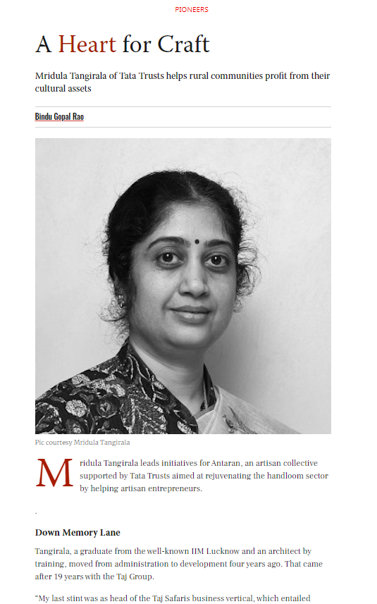 Tata Trusts’ Antaran is an an initiative by India’s oldest philanthropic organization, aimed at rejuvenating the handloom sector by empowering artisans to support their journey into entrepreneurship that is ably led by Mridula Tangirala.