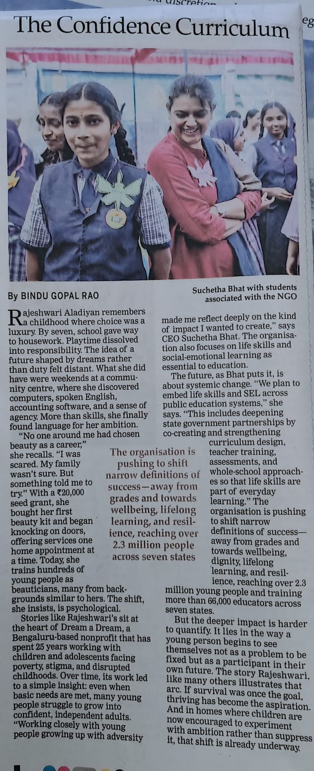 Life skills are not treated as add-ons, but as essential capacities needed to navigate uncertainty, complexity and change in the modern world. Dream a Dream also developed the Life Skills Assessment Scale (LSAS), a scientifically validated, India-contextualised tool that demonstrates how low-cost life skills interventions lead to measurable gains in cognitive, emotional and social development among children facing adversity.